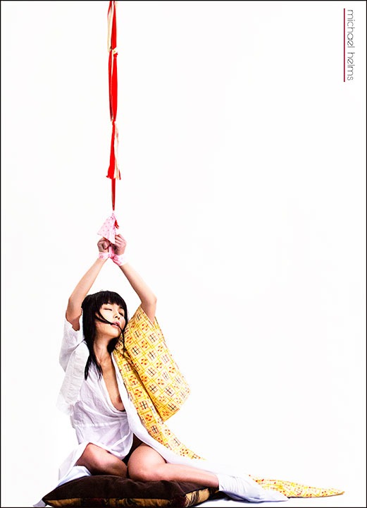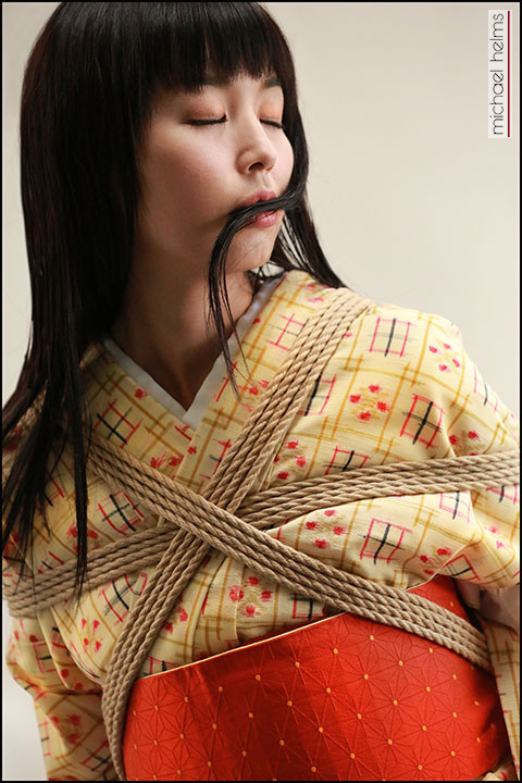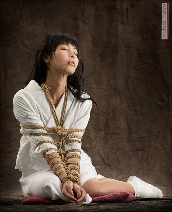 Michael is a superb teacher and he expertly led the photographers in “seeing” opportunities to capture this beautiful model in a variety of classical Kinbaku poses as well as in highlighting the ties, lighting and rope details. The session progressed from poses done in a beautiful kimono, through poses in kimono undergarments and, finally, to full nudity. I felt I was back in Tokyo!